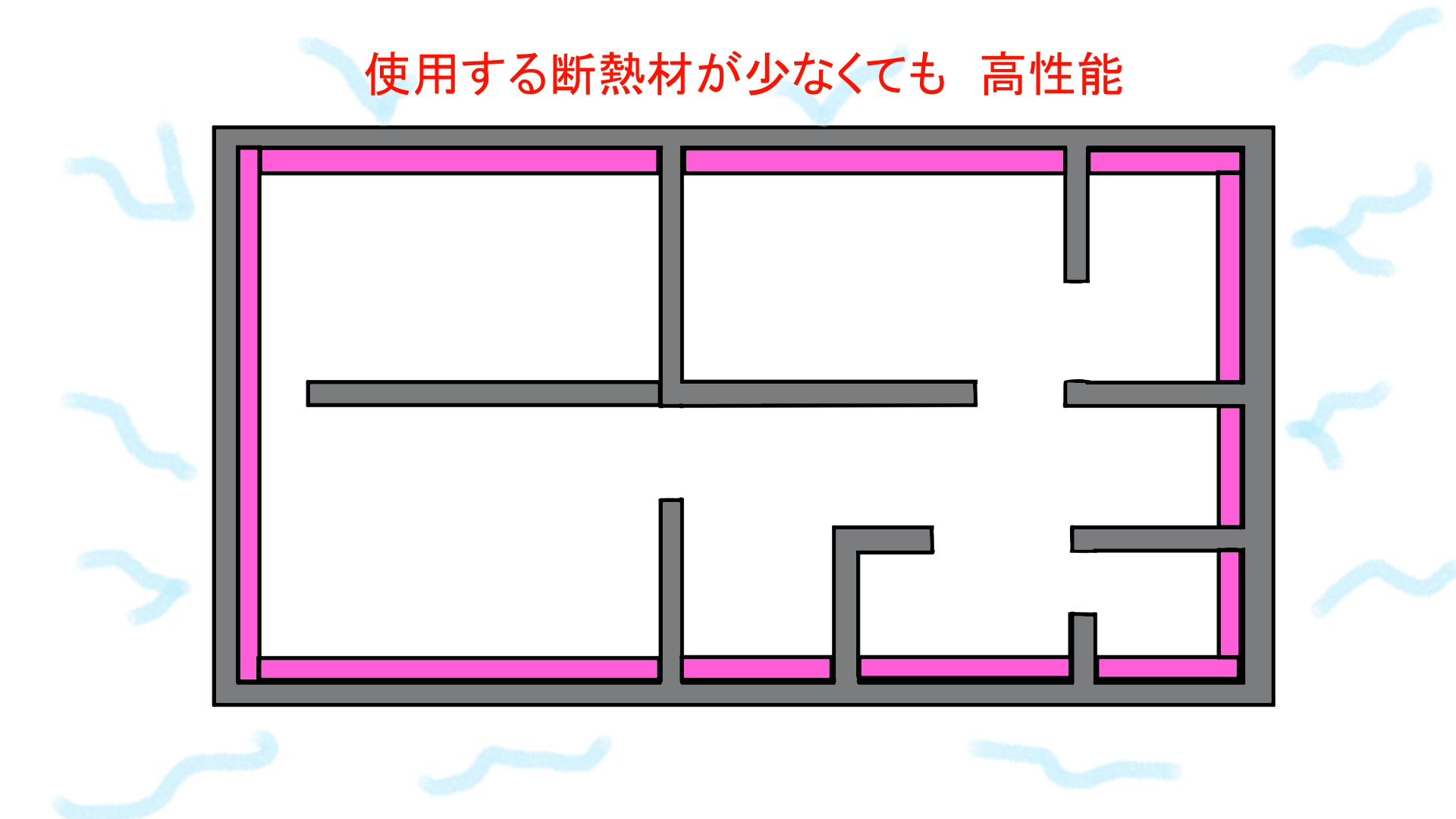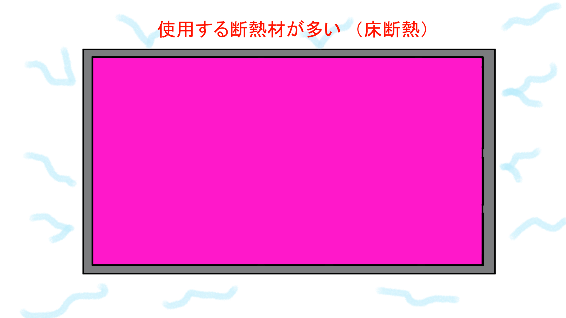 床断熱に比べて 断熱材の枚数が圧倒的少なくても同性能を確保できる