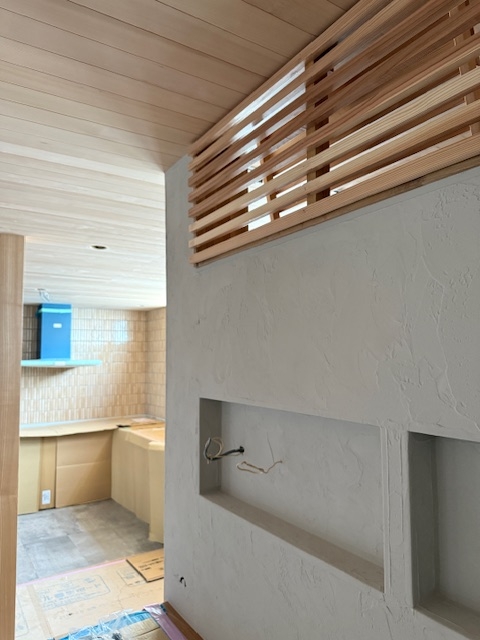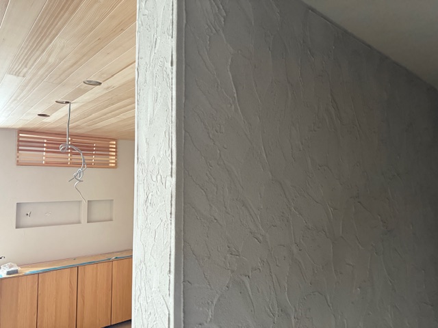 朝日が気持ち良く入り 塗り壁の表情を照らしております