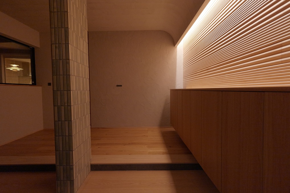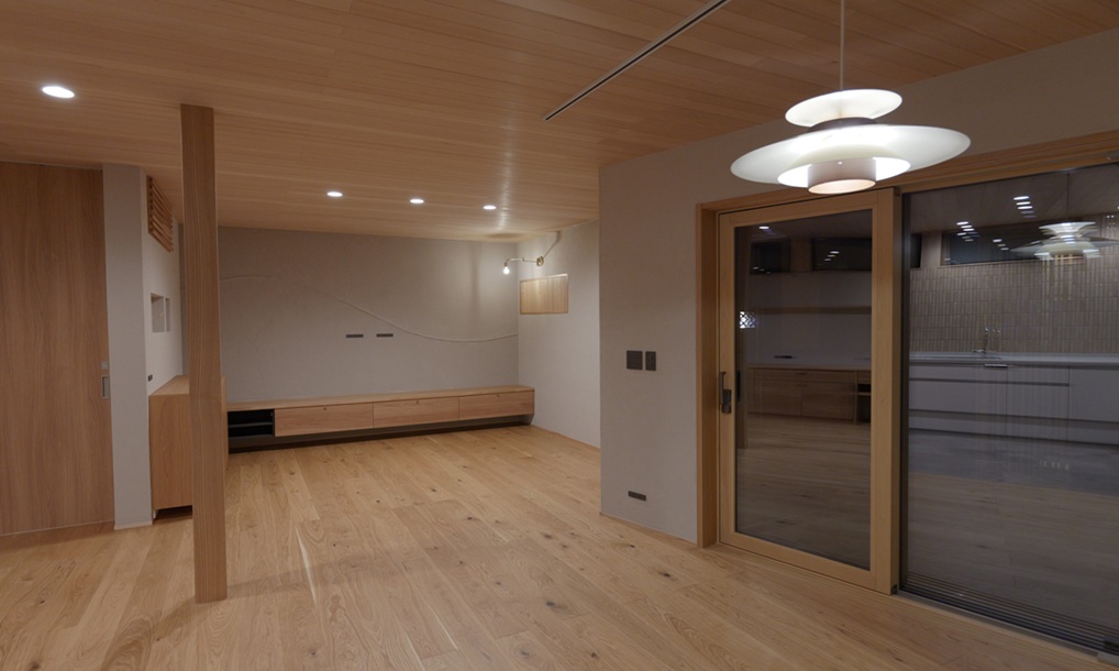 中庭を望むLDKです(夜間なので 中庭が見えなくてスイマセン、、、、)