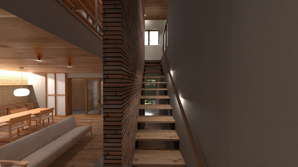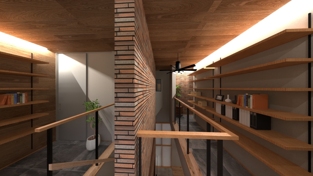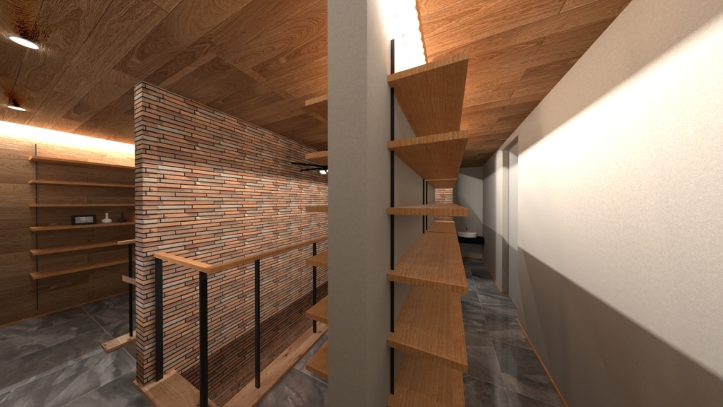 昨日の1階3Dの投稿で 吹き抜けのレンガ壁
