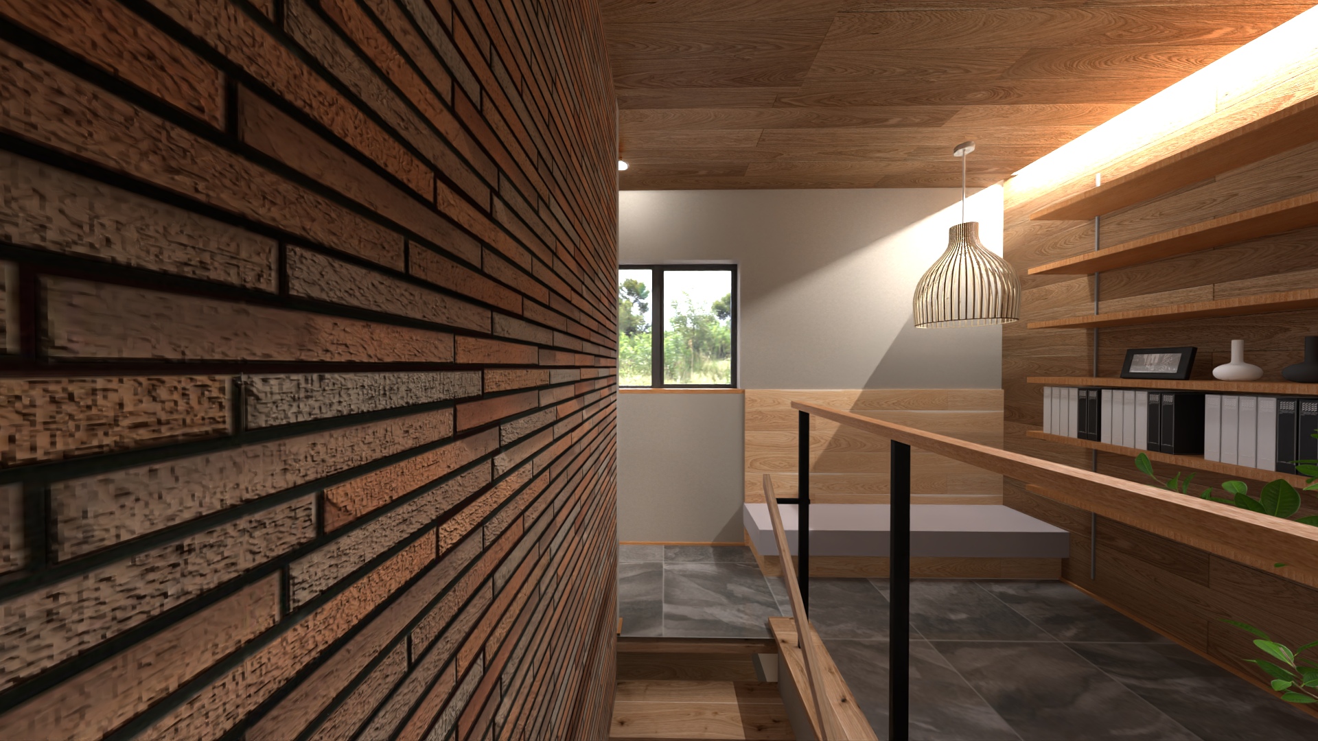 昨日の1階3Dの投稿で 吹き抜けのレンガ壁