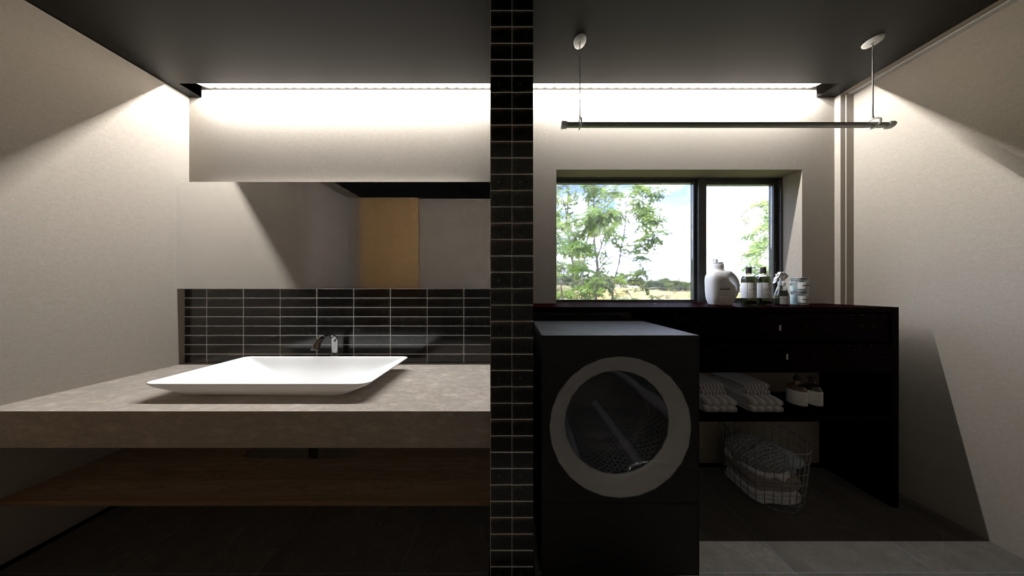 和風のLDKとは違い スタイリッシュな水廻り空間です