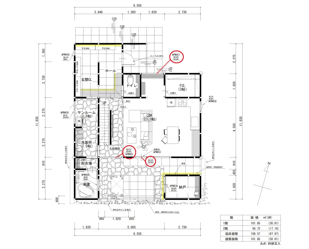また 採光計算でNGがでたので 他の窓の見直しもあり、ちょうど良かったです