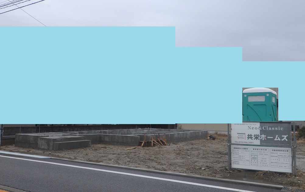 こちらの物件は基礎工事完了。(現在養生中) 年明け一発目の上棟です