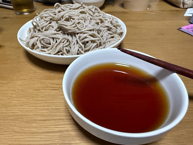 2025年大晦日 最後の晩ご飯は たくさんの蕎麦を煮て大皿に盛り家族でつつきました