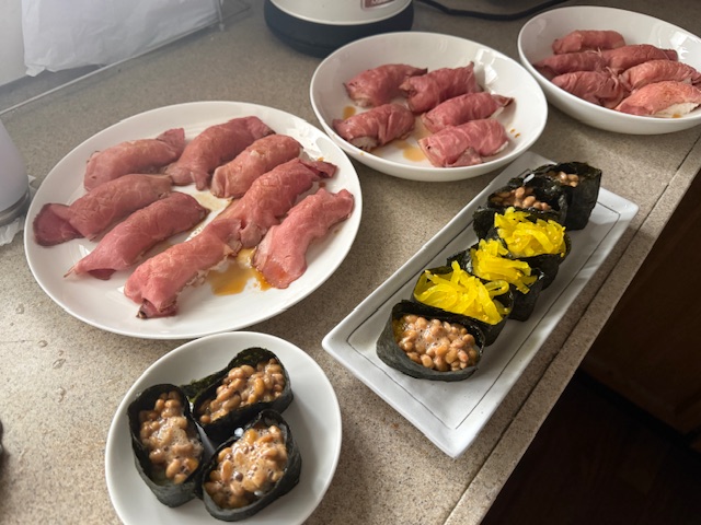 890円で買ったローストビーフを買って肉寿司にしました。