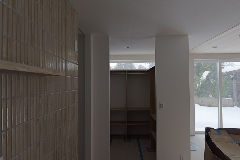 また すべてハイドアを採用しています、たまに「デザイン性に拘ってハイドアなんですか?」と言われますが、それもまた一つの理由ですが、冬場の暖気は天井に溜まるので 建具がハイドアじゃないと そこで暖気が溜まり全館暖房の循環効率が悪いからです。