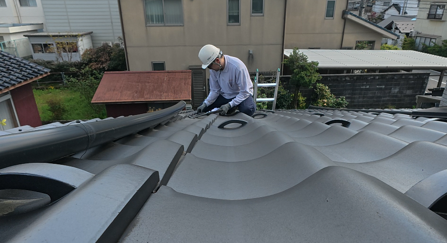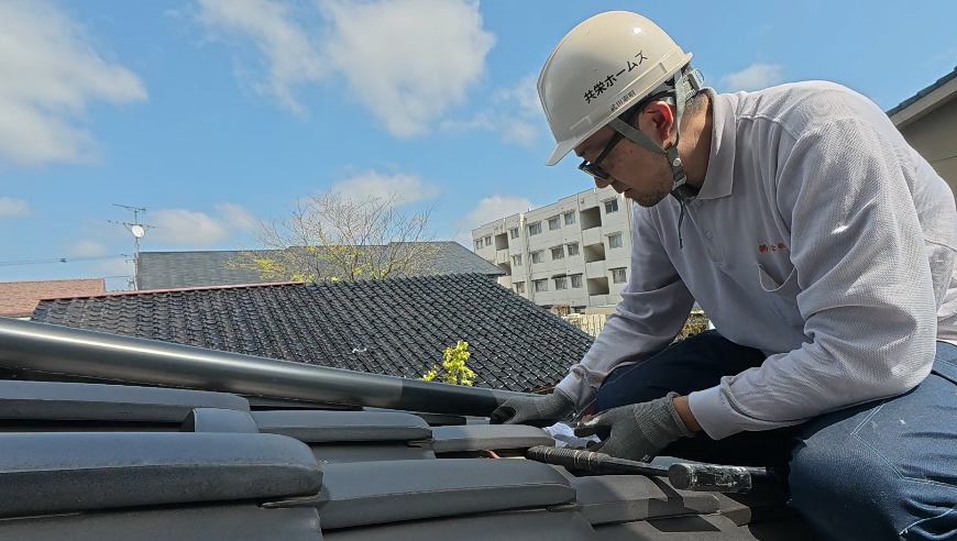 僕:「既存の雨樋 かなり曲がっていますので、取り敢えず 瓦屋さんが来れるまで この状態で、しのいで下さい」と伝えたら